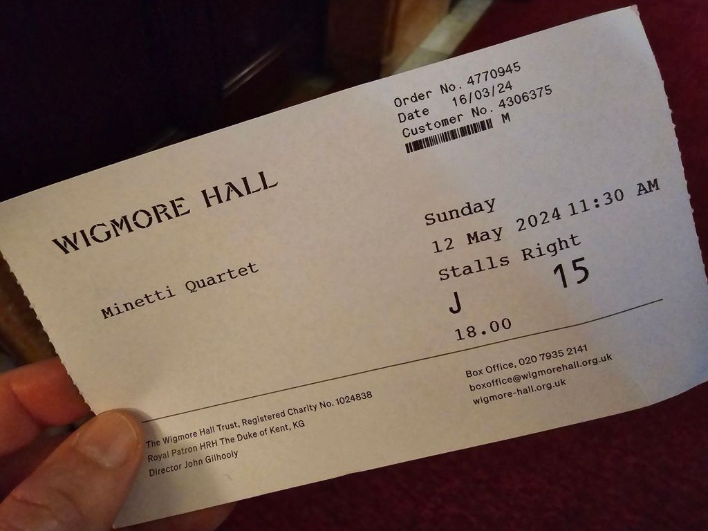 Last but not least ou plutôt last sur la liste, un concert du dimanche matin au Wigmore Hall. Rdv à 11h30 pour de la musique de chambre « easy » : Mozart et Dvorak, du sûr, du beau, et de la diversité musicale.