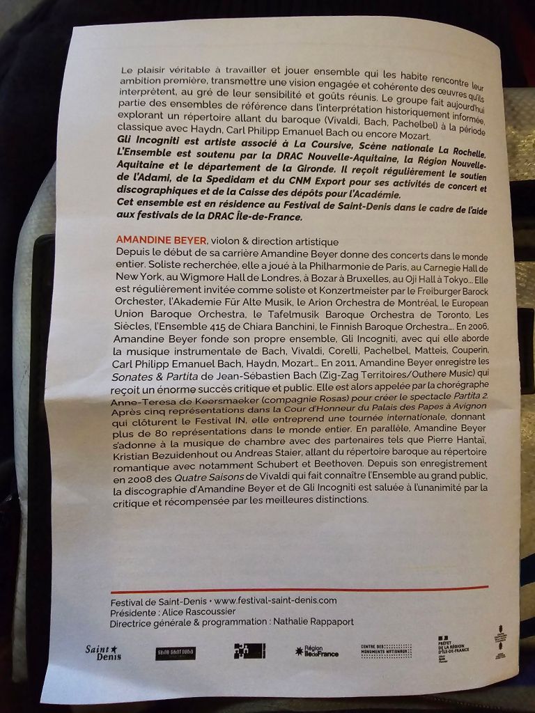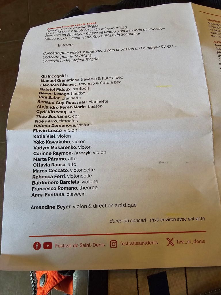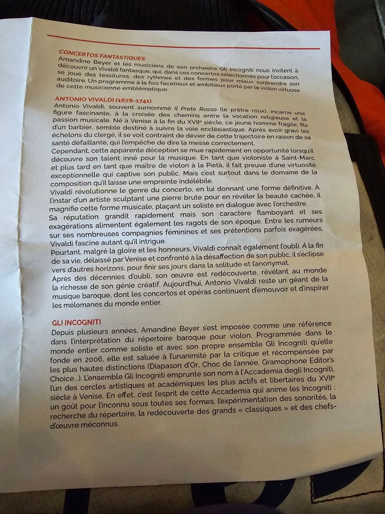 « Vivaldi Le Monde A l’envers » tout un programme…d’un pestacle qui se révèle familier sans l’être tout à fait. Pas de tubes tels que les 4 saisons, pas plus de concertos pour violon ou mandoline, mais des concertos tout aussi fantastiques du Prêtre Roux qui valent leur pesant de cahuètes, Christine !
