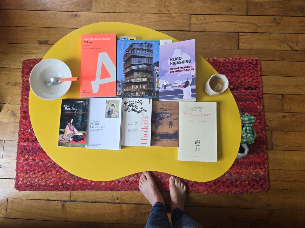 Parce que je ne peux voyager sans eux, mes livres de chevet ornent la table en forme de haricot de mon salon. Ils seront dans ma valise en soute et mon sac en cabine, et me parlent déjà. Certains d’entre eux que j’ai lus, je les relirai et tous, sans exception, je les relierai à mon ADN. Entre deux pages de lecture, je m’évaderai le temps d’écouter les grillons,ou de laisser crisser mes semelles en cuir sur des pierres qui ne roulent pas ou de la paille de riz. En lisant des haïkus, j’oserai percer le mystère de la lune et la mer de tranquillité. Je suivrai mes songes, au plus près de l’ombre. J’ouvrirai grand les yeux et vous raconterai, les oreilles tendues, le coeur vagabond.