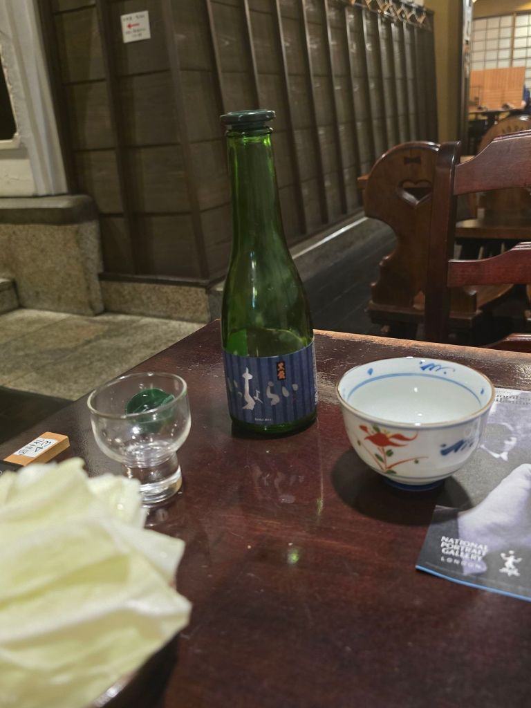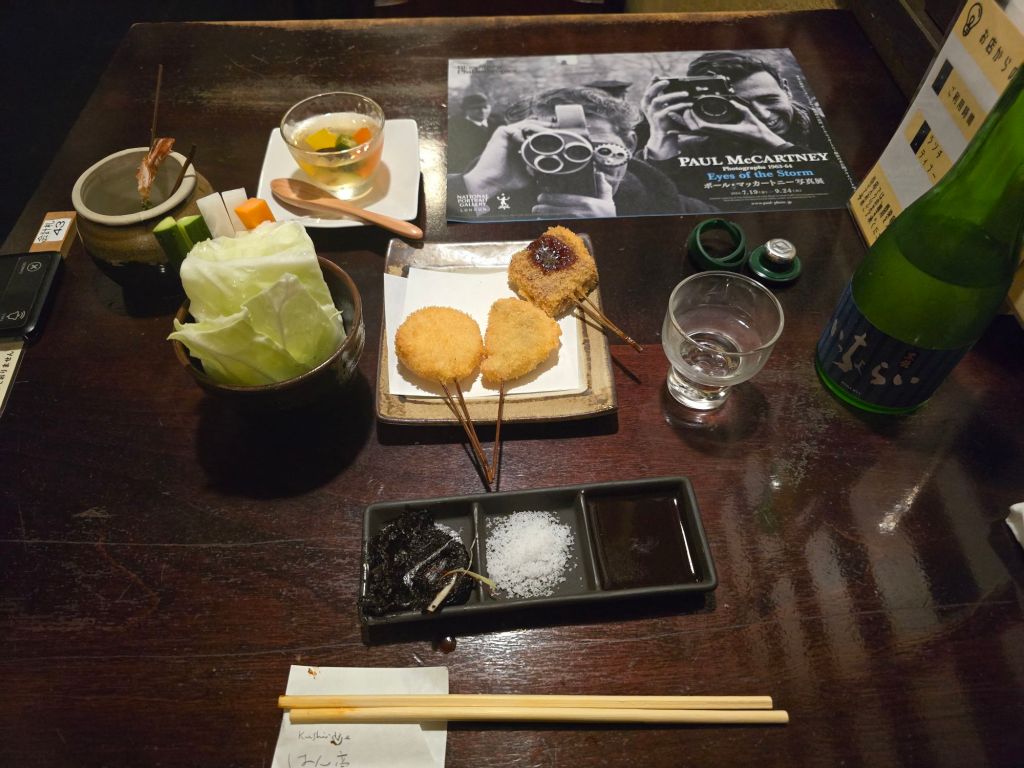 Ce soir, dîner dans mon quartier, à 30 min de marche, c’était « oishi » autrement dit, plus que bon. Tempura, fritures de sardine, gambas, coquille St Jacques, gingembre…d’une grande finesse, accompagnées d’une sauce miso et de saké…