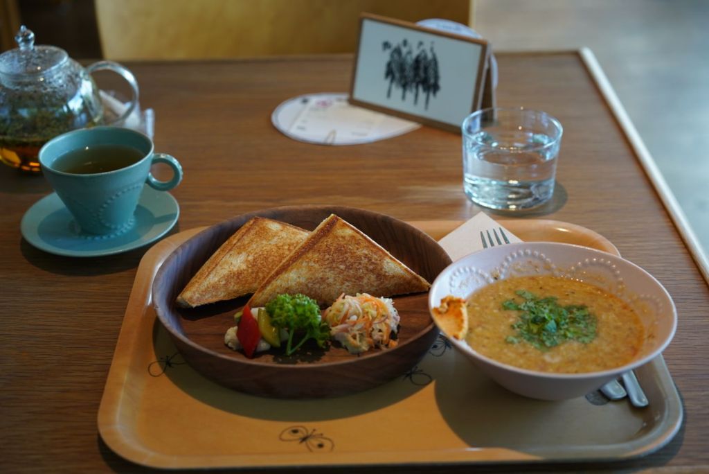 Dans le concept store Spiral, des expositions se tiennent au rdc (des fabricants de tissus Kyoto actuellement), et au 3ème, une boutique d’artisanat propose de très beaux objets, vases en céramique, couteaux…Enfin au 5ème, « Ogata », maison mère de la succursale parisienne logée dans le Marais, rue Debelleyme, propose des dégustations de thé et des objets en cuivre d’une grande beauté, (j’y étais allée, il y a 6 ans et j’y avais commis des folies partagées) et « Call », petit restaurant, suggère des plats du jour, tels que soupe de corail et croque monsieur sans oublier des tisanes au mélange exquis de petites herbes.
