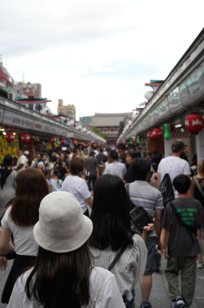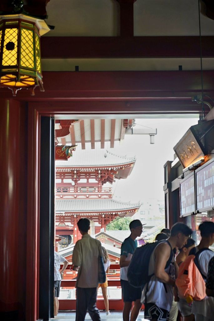 Entrée principale du temple Senjo-ji La solitude chantait Bécaud, ça n’existe pas, va savoir Georgette ??? Purcell a bien écrit O solitude, sublime œuvre chantée ou pasMon dragon plutôt sympathique Le grand temple La pagode faisant un clin d’œil à la Tokyo skytree Une de mes chaussures de marche !Un poète Une bienfaitrice Des oiseaux pas farouches Un jardinier, un type courageuxDans le temple principal, l’heure est aux offrandes A la sortie du temple principal, je n’ai pas résisté, cette enfant s’ennuyait et avait envie de jouer, je l’aurais bien imitée !Le centre d’information pour le tourisme avec ce bois toujours présent chez Kengo Kuma. Je suis entrée à l’intérieur, rien de particulier à ajouter.Le carrefour qui dessert le temple, le métro et le centre d’information en provenance de la Sumida, de la Tokyo skytree…La Tokyo skytree et la mousse d’une bière qui coule à flot au siège d’AsahiUn fūrin (clochette japonaise) Les bords de la SumidaLes multiples galeries et leurs marchands du temple au propre et au figuré
