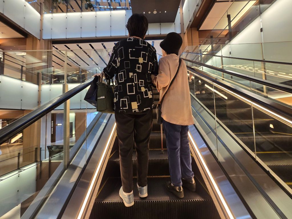 Puis, je tire sur le fil de mon parcours jusqu’à design 21 21 et la matinée est cuite, moi aussi ! Je continue dans le coin avec l’idée de me restaurer dans une autre galerie marchande qui héberge aussi le musée d’art de la fondation Suntory (grand nom du whisky japonais et de boissons non alcoolisées, ex orangina…) dont le design est signé Kengo Kuma…Je ne commenterai pas dans le détail, il a notamment intégré des lames de bois de paulownia à l’intérieur du musée ce qui apporte beaucoup de chaleur.