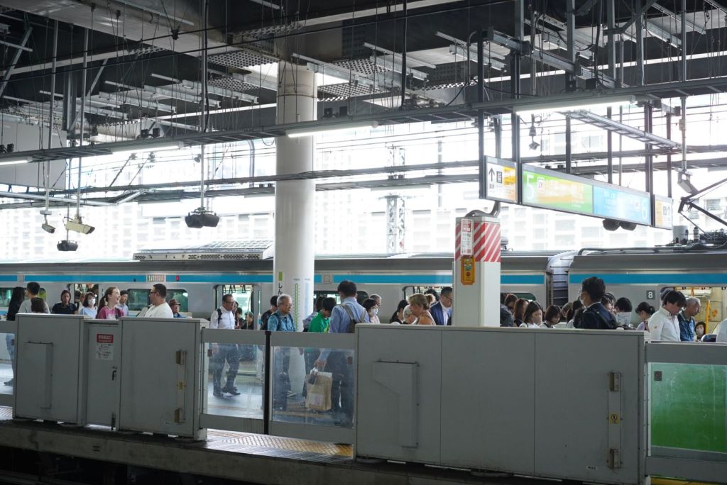 J’ai voyagé jusqu’à la station Shimbashi, au sud-est de Nippori, la station la plus proche de mon nid, en empruntant la ligne JR Yamanote, avec l’idée de visiter ce beau jardin aimé des Tokyoïtes, Hama-Rikyu.