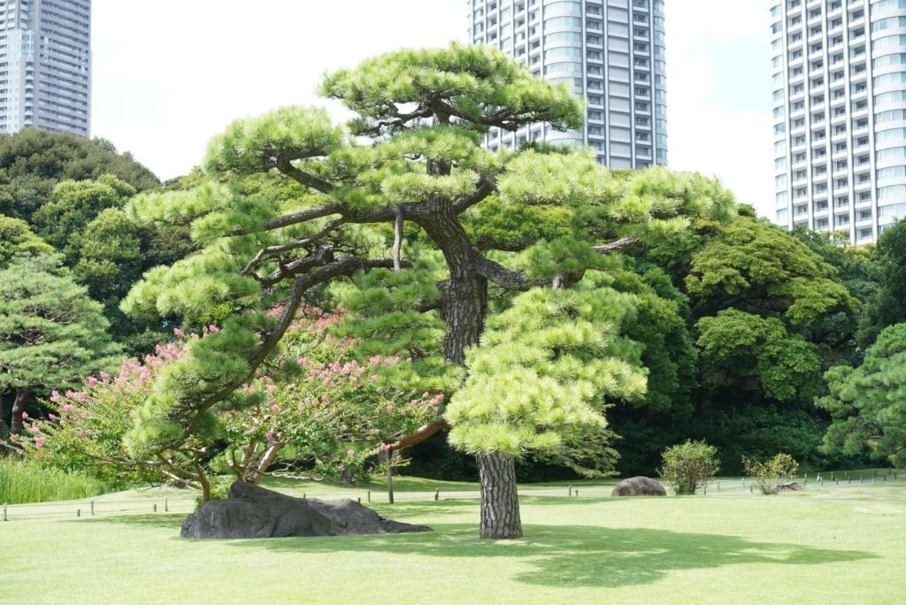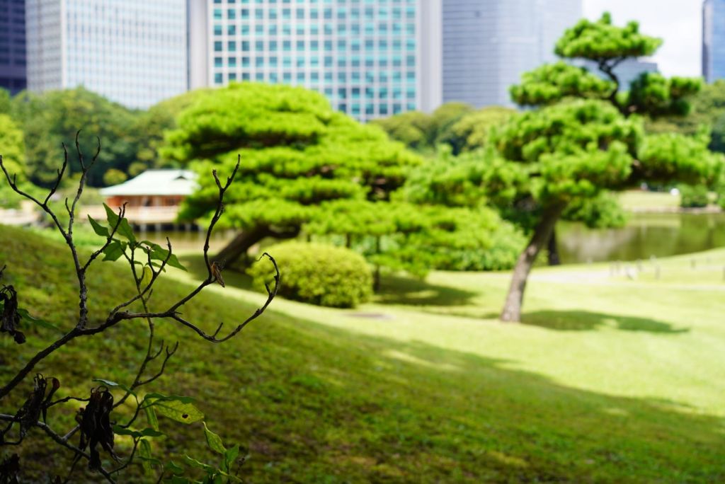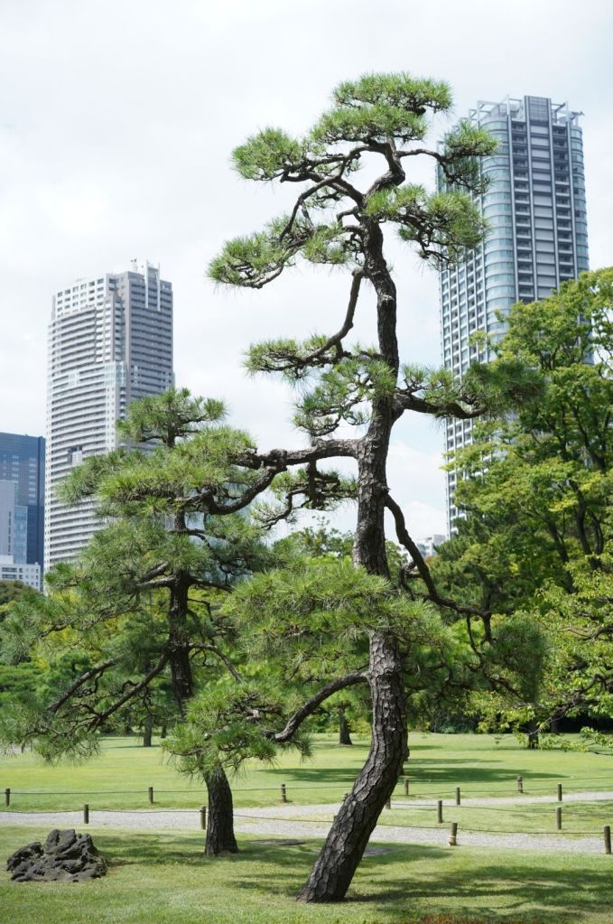 J’ai marché sous le Kokusho, sans ratisser intégralement les 25 ha du jardin de Hama-Rikyu. Ce dernier date du 17ème siècle, et se compose d’étendues d’herbe, d’étangs dont un d’eau de mer, de 4 maisons traditionnelles dont le pavillon de thé et d’arbres plusieurs fois centenaires. Les jardiniers sont à pied d’œuvre, et l’ombre rare…