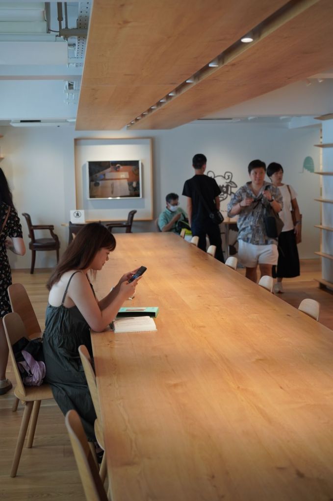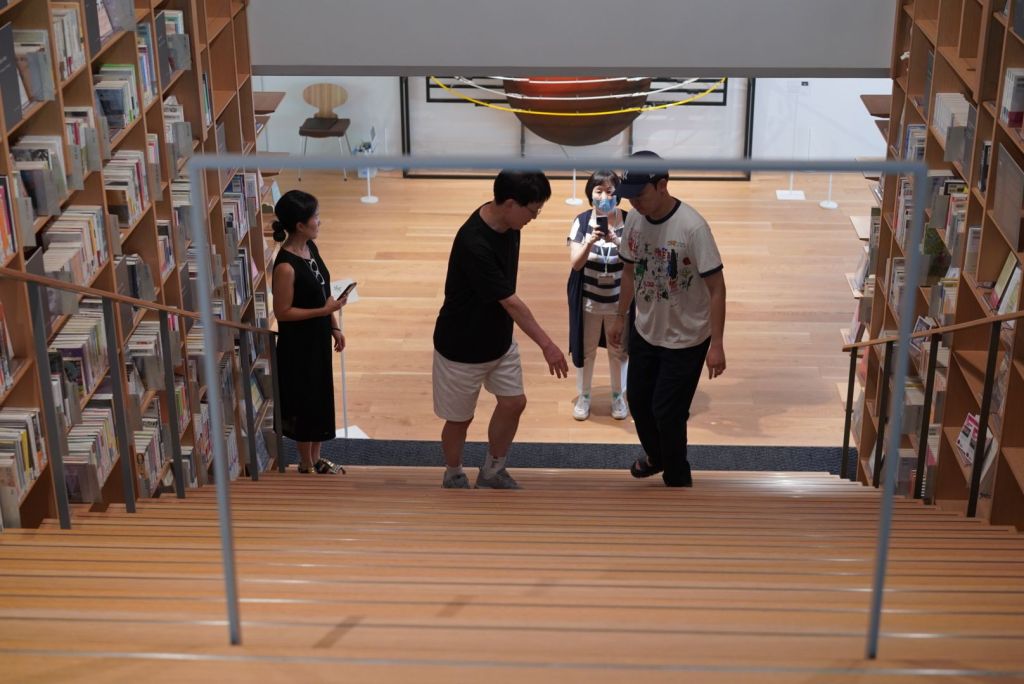 Et, au bout de cette 1ère étape, découvrir l’antre de Murakami Haruki, une bibliothèque où sont exposés ses livres dans de nombreuses langues, et quelques uns de ses vinyles avec salles de lecture et d’écoute, et lieu d’exposition temporaire, Kafka en ce moment.