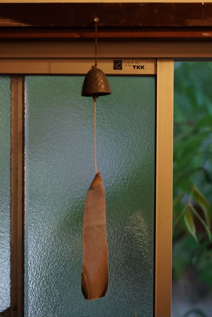 Le fūrin, c’est une clochette qui par le vent remue et fait tinter son battant contre les parois qui peuvent être en bronze, en verre ou même en bois. Elle est accrochée aux rebords des fenêtres ou aux chambranles des portes, uniquement l’été. Et, surtout son tintement apporte un son léger, doux, enveloppant.