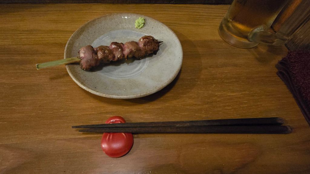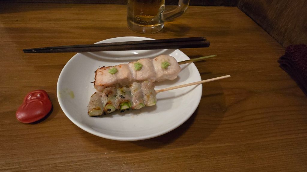 Mon voisin m’a donné ses recommandations en termes de Yakitori, asperges poulet, poulet au yuzu, foies, …C’était délicieux.