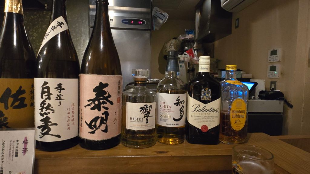 Un taisho, c’est un commandant en chef ! J’y suis allée au hasard et qu’est-ce que c’était bon. Ce chef assure toutes les tâches derrière son bar et ne parle pas anglais, pas plus que ses menus. Forcément, c’est compliqué mais mon voisin très gentil m’a aidée. J’ai remarqué l’existence de femmes Japonaises seules. Tout individu ici présent boit et mange. Elle/il boit de la bière et du shôchû (alcool de pommes de terre) noyé dans le soda et des verres à orangeade, longs, longs, très longs. Après 1 ou 2 bières et 4 , 5 verres, ils tiennent toujours sur leur fauteuil. Et, ils fument…