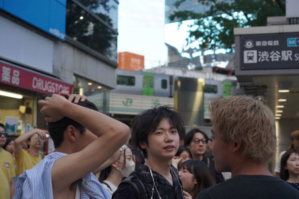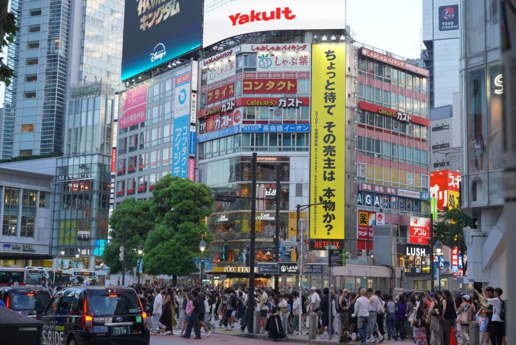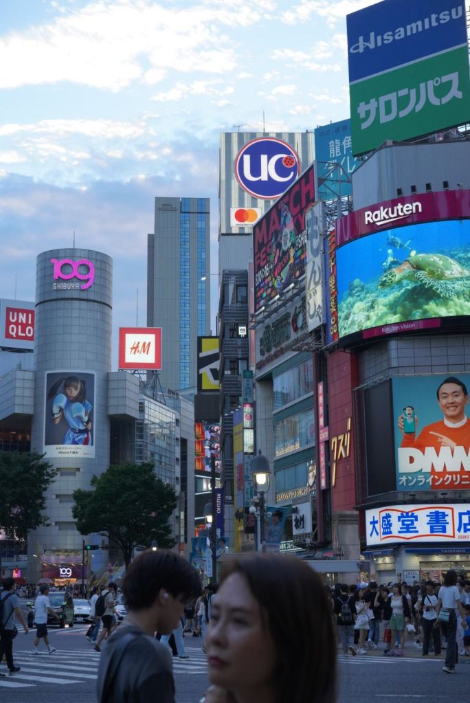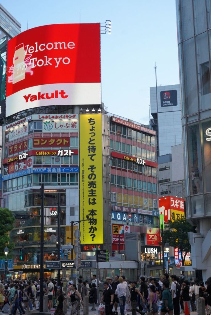 Rejoindre Shibuya, à pied, se fondre dans la foule, regarder les néons de marques internationales s’enflammer en haut des tours et observer les anonymes qui sont en mouvement, ici ou là, et, déjà ailleurs.