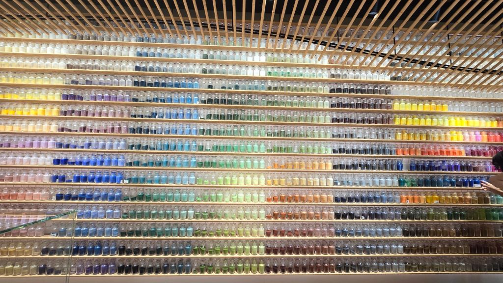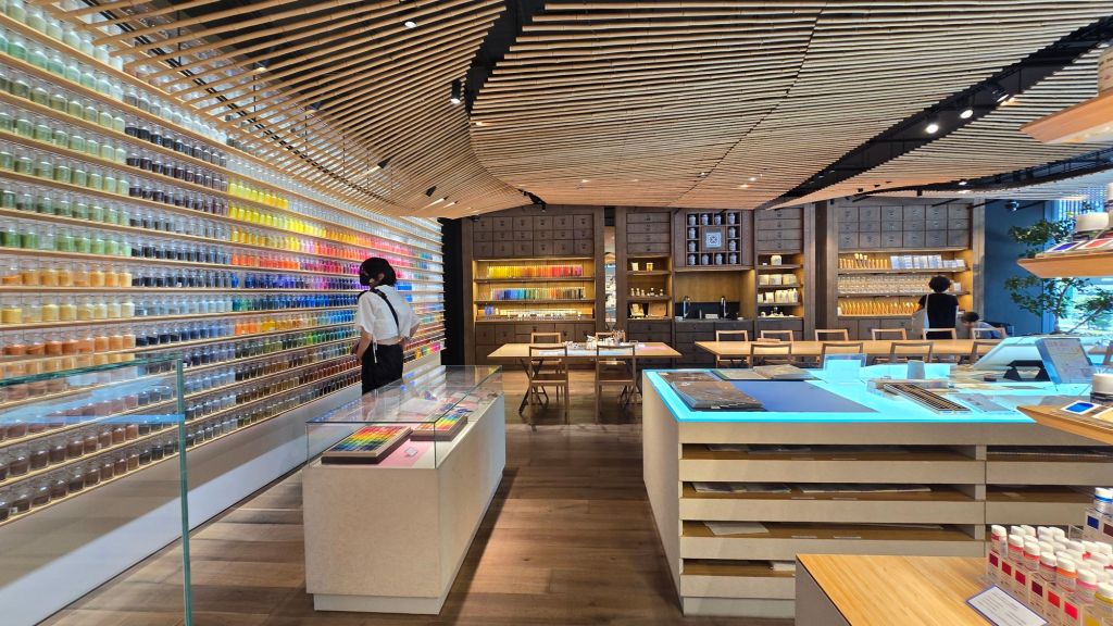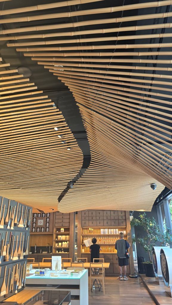L’expo Kenzo Takada, ce sera pour une autre fois, opportunité de rejoindre l’estuaire et la boutique « Pigment », design de Kuma Kengo.