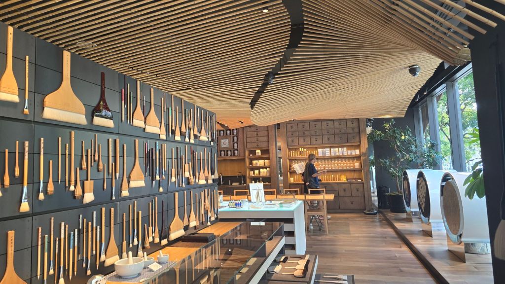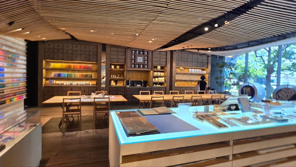 Magnifique marche, entre eau et béton, fabuleuse boutique, pour les amoureux de la calligraphie et de la peinture.