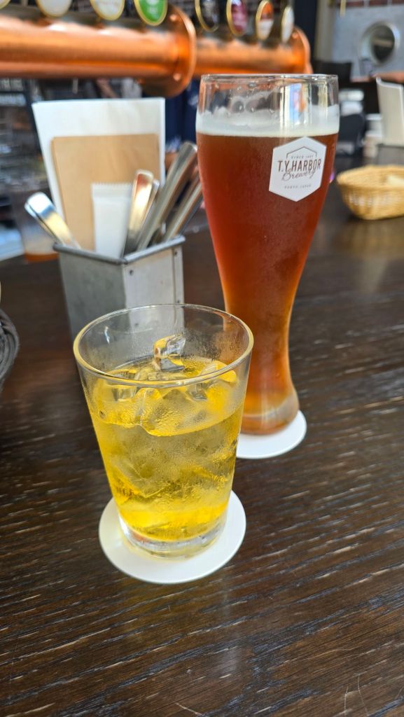 Et, maintenant, je me restaure, en mode occidental, dans une brasserie au doux nom de TY Harbor, IPA et sandwich de légumes au menu, thé glacé et café filtre, pour re-pigmenter.