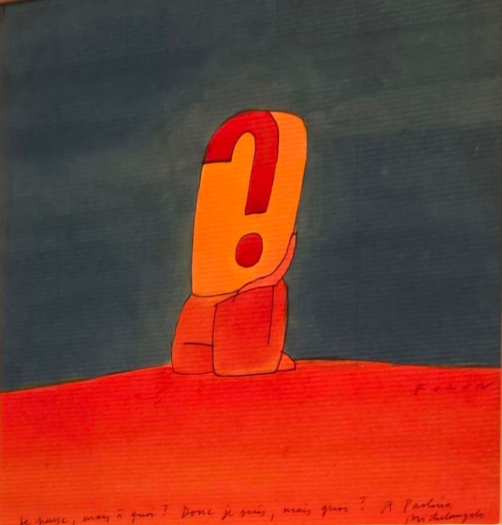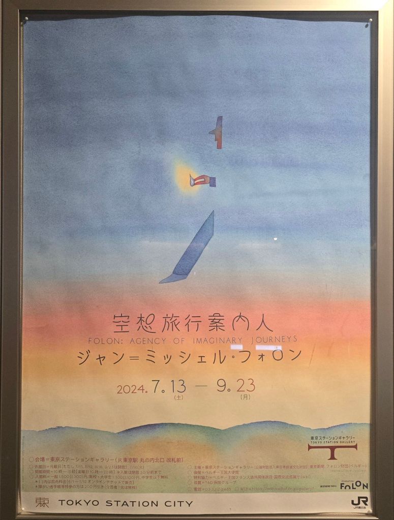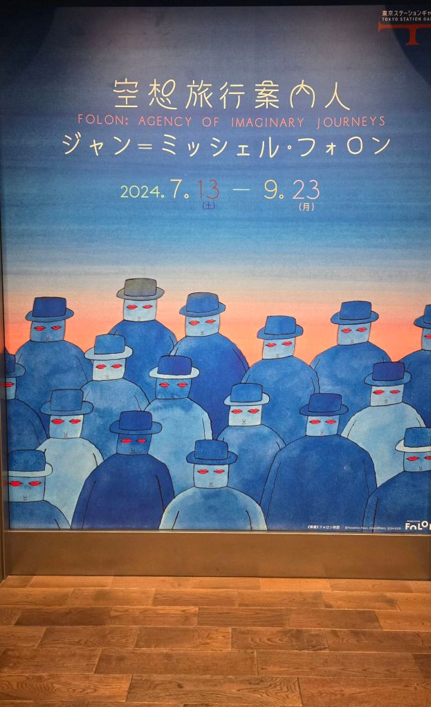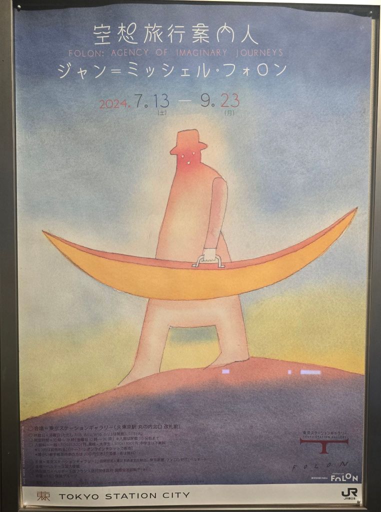 Aneth en goguette, en ce 16 août 2024, n’avait pas prévu de rester scotchée dans sa chambre, même si j’étais interdite d’aller à Kyoto, Tokyo restait un terrain de jeu ouvert. Après le petit-déjeuner, je suis allée voir l’expo Folon, dessinateur belge (1934 – 2005) génial, tombé dans l’oubli en France, faisant partie de la mémoire des noctambules, qui se laissaient, volontiers, bercer, par ce moment de pure magie, à l’issue du dernier programme d’Antenne 2 (cf. vidéo volée tout à l’heure – je me suis fait prendre la main dans le sac). Il a dessiné sur les panneaux indicateurs, en les caricaturant, autour de ce questionnement : est-ce cette voie, ou cette autre ou d’autres encore ? Il avait en ligne de mire l’importance de la liberté. C’était un poète philosophe et un être politique, pour l’écologie, contre la guerre et la peine de mort, qui donnait à ses dessins, aquarelles, et petits films, une dimension douce et nostalgique. Il était intéressé par les nouvelles technologies, il a dessiné pour Apple, et la lune restera l’un de ses thèmes de prédilection. Il a habité Burcy, dans le Gâtinais, et y a peint les vitraux de l’église. Forcément, il est impossible de ne pas y aller, tôt ou tard.