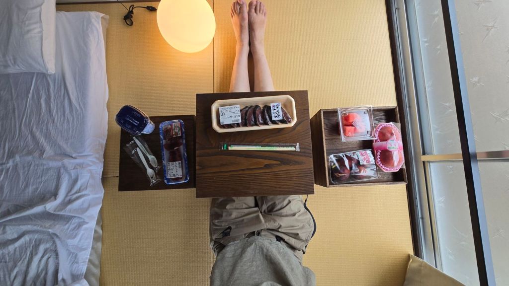 A mon retour, du fait de l’alerte sur Google Maps, alors que j’avais l’idée d’une autre expo, j’ai fait le plein de vivres, assez seule dans les rues, le métro et l’hôtel, toutes les boutiques étant fermées hormis les kombinis.
