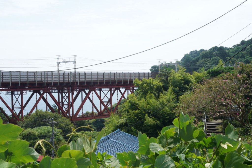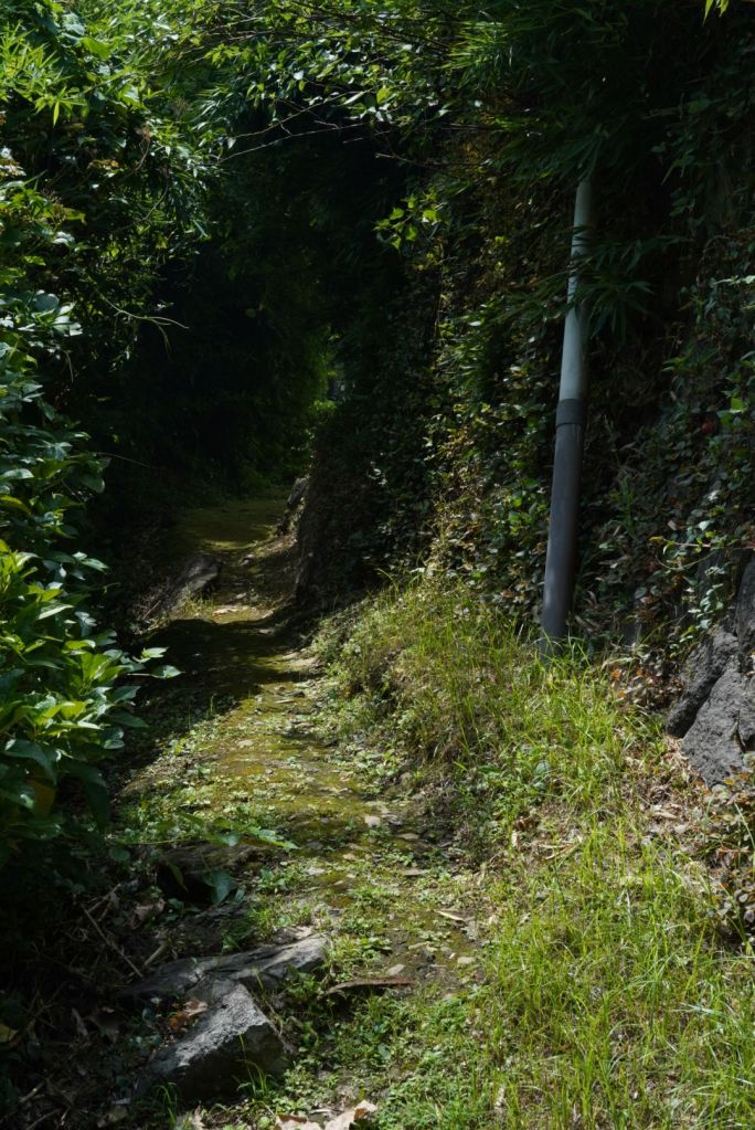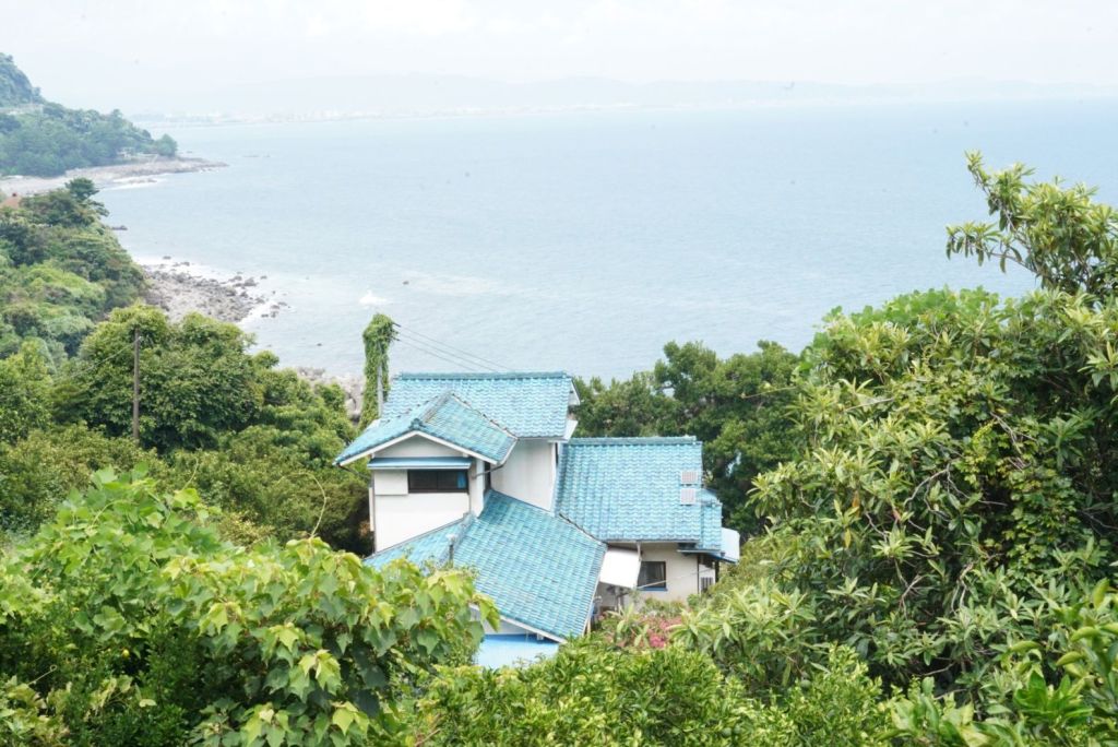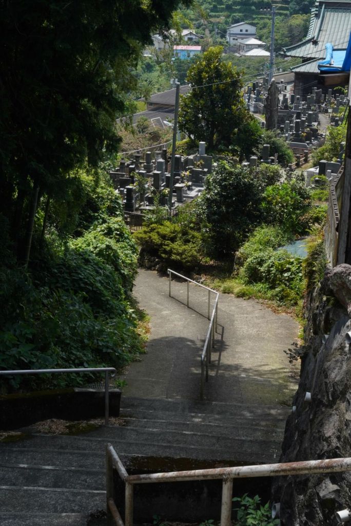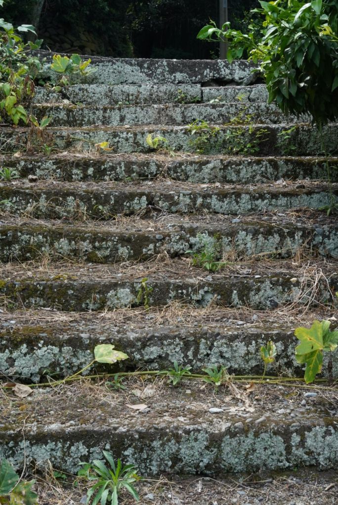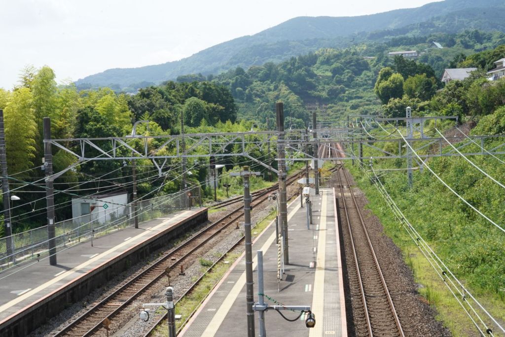 Journée de folie, j’ai crapahuté mais ça valait le coup, même si j’ai autant aimé, voire plus, le chemin, que le spot. Je suis allée à Atami par le train rapide à 35 min depuis la gare de Tokyo. Cette station balnéaire, qui joue un rôle clé dans Voyage à Tokyo, l’un des chefs d’oeuvre d’Ozu, se situe au sud de Tokyo, sur la baie de Sagami, à l’ouest de Kamakura. De là, je suis sautée dans un train régional, omnibus, qui a pris son temps, attente à quai et tortillard jusqu’à Nebukawa. Et, puis, j’ai marché, en prenant un GR parfois magnifique, sur certains tronçons pénibles car sur la route et croisant les voitures, heureusement au pas, sur peu d’espace pour les piétons, et d’autres encore au milieu de grandes herbes non fauchées…1h30, peut-être plus, sous le kokusho, ça casse et en même temps, ça m’a préparé, j’aime les chemins, la route, la marche, pour elle-même. Je regarde, je m’arrête, je bois, je respire, je pense, j’avance.