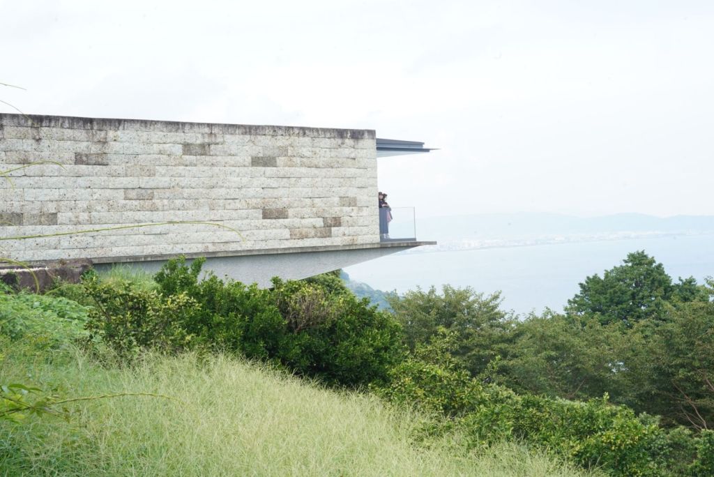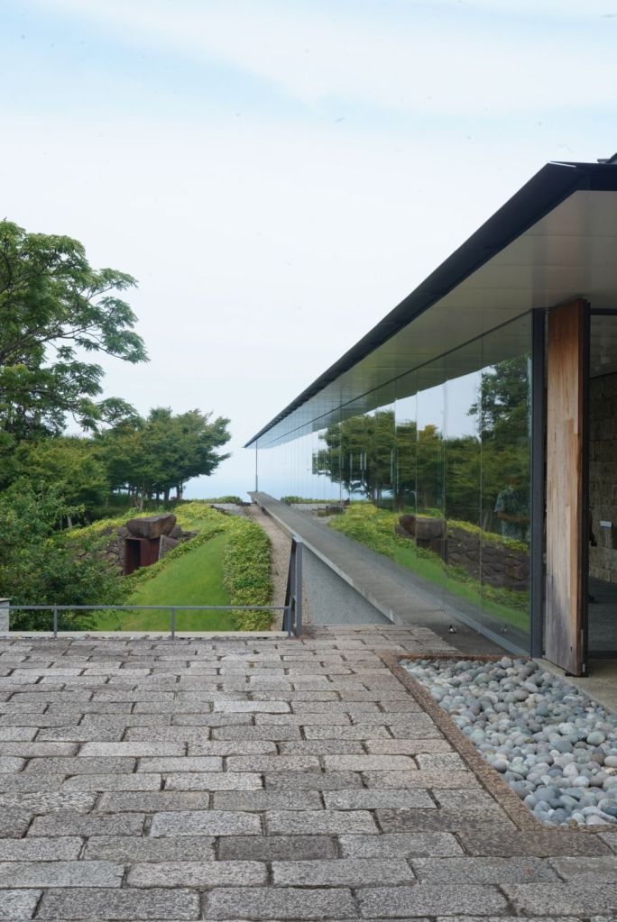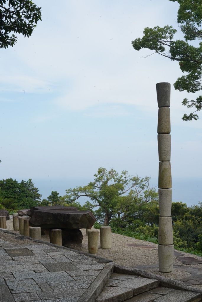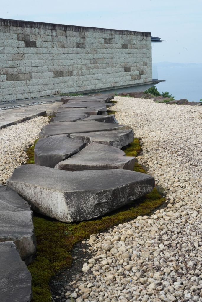 Et là-haut, Enoura, son ou ses observatoires et ses jardins humides et secs valent leur pesant de cacahuètes, merci à Sugimoto Hiroshi, photographe, qui a conçu ce site, dans ses moindres détails et qui nous apprend à mieux ressentir et regarder la vie dans le cosmos. J’ai eu la sensation de me téléporter dans Naoshima,7 ans plus tôt, œuvre du grand architecte Ando Tadao. C’est plus dépouillé, humble, par rapport à l’île de la mer de Seto. L’empreinte humaine y est subtile, aucun musée, pas d’hébergement, ni de restaurant, dans le site ! C’est un lieu de retrouvailles et de recueillement avec dame Nature, pas un lieu de consommation.