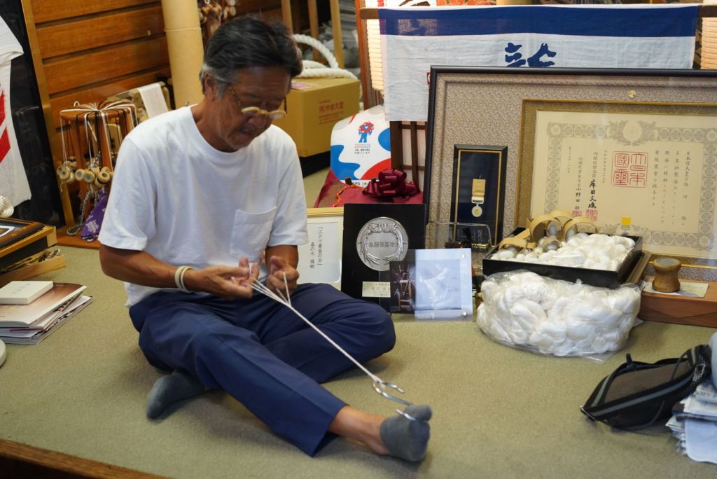 Ce matin, l’un d’entre eux m’a fait une démonstration et offert le petit bracelet qu’il a réalisé sous mes yeux…Il travaille pour l’empereur, Suntory, Hermès…Magnifique !