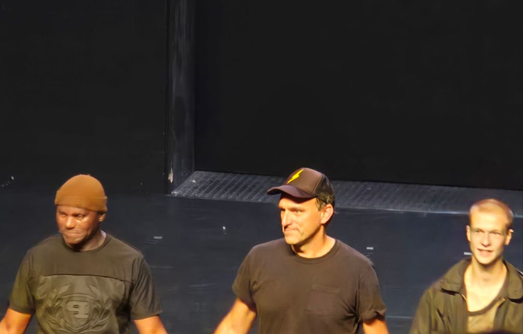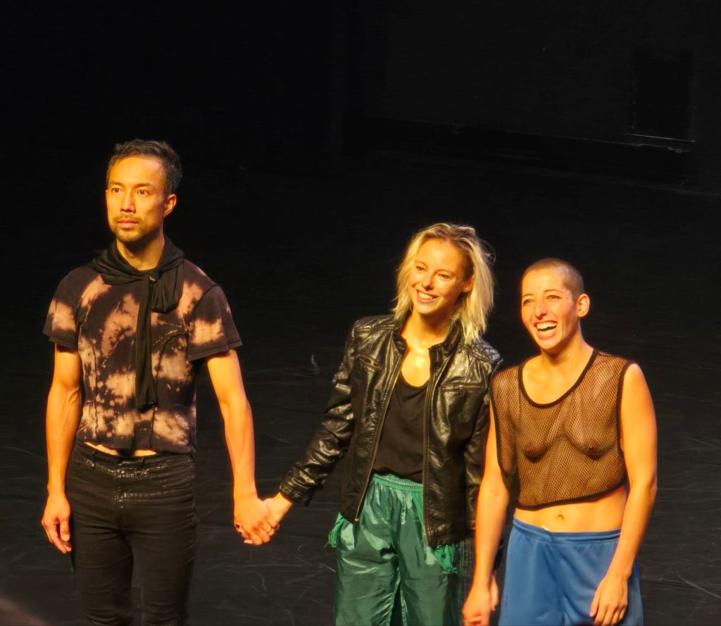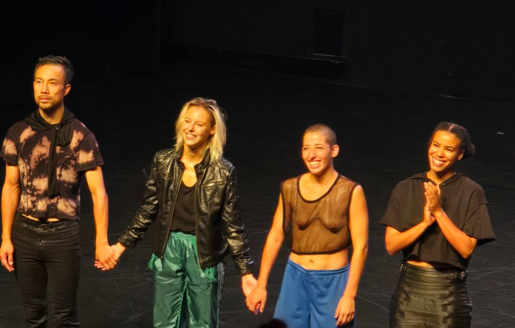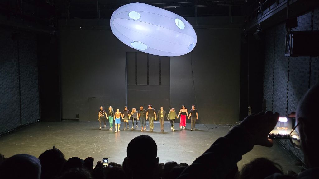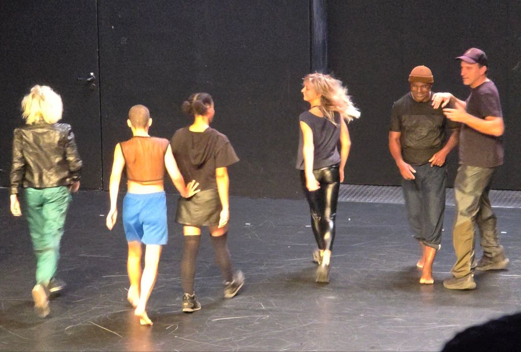 Le spectacle parlait de la solitude et de duos, de synchronicité, de la beauté d’être mêlés, entremêlés, et d’allers retours vers une vie repliée sur soi pour mieux repartir ici ou ailleurs.