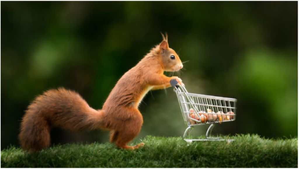 Pour sortir du cadre, je prends mon appareil photo extra neuronal, un boîtier doté de l’IA pour aller capter mon double, un petit animal orange, un écureuil, plein de panache qui pousse un caddie, avec la ferme intention de partager un festin de noisettes à l’approche de l’hiver. Je l’observe, les oreilles surmontées d’un surplus de poil, la truffe tranquille, l’œil ouvert à 94 degrés, et plein d’allant. Pour lui aussi, c’est l’heure du ding dingue dong !