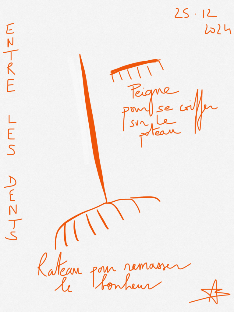 Uncategorized Le pinceau entre les dents Publié par antigonegone.com le décembre 25, 2024 C’est l’heure de sortir les outils dissidents et de dessiner la vie du dedans. Noël 2024 sans les dents du fond qui baignent, ça se fête ! Partager : Cliquer pour partager sur X(ouvre dans une nouvelle fenêtre) X Cliquez pour partager sur Facebook(ouvre dans une nouvelle fenêtre) Facebook J’aime chargement…