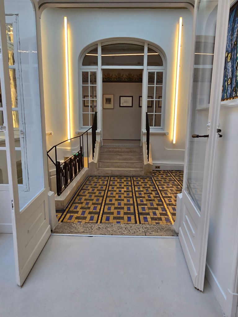 L’architecture de cet atelier d’artiste combine art nouveau et art déco, de l’extérieur vers l’intérieur, à travers les tentures, les carrelages, les vitraux, les portes, les cheminées, les escaliers, le mobilier, les toilettes, la cave et sa mezzanine. A chaque battement de cil, et respiration, une nouvelle brindille entretenait ce feu d’artifice de beauté, telle une régalade savoureuse, une joyeuseté douce et folle qui me prenait par le poul et les papilles, sens dessus dessous.