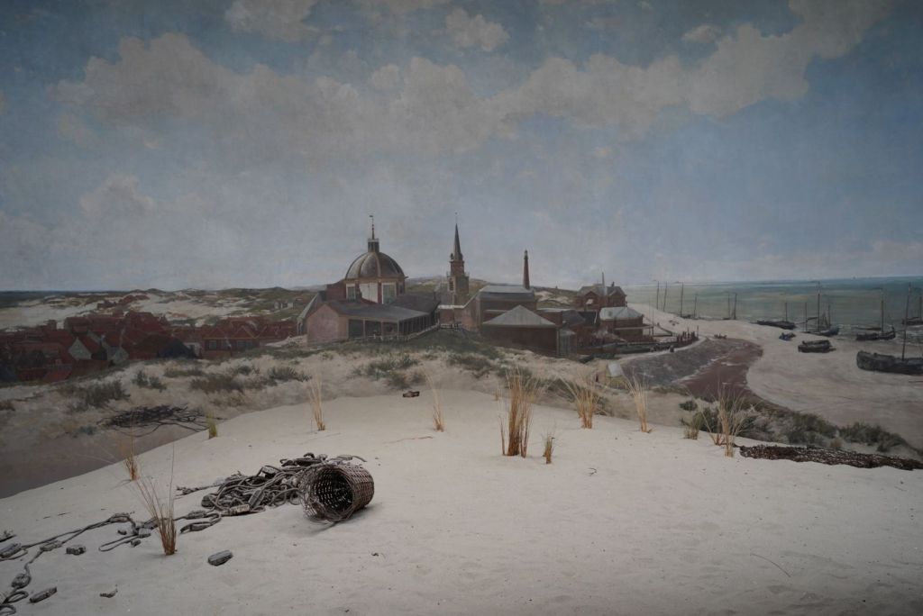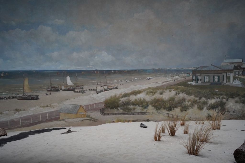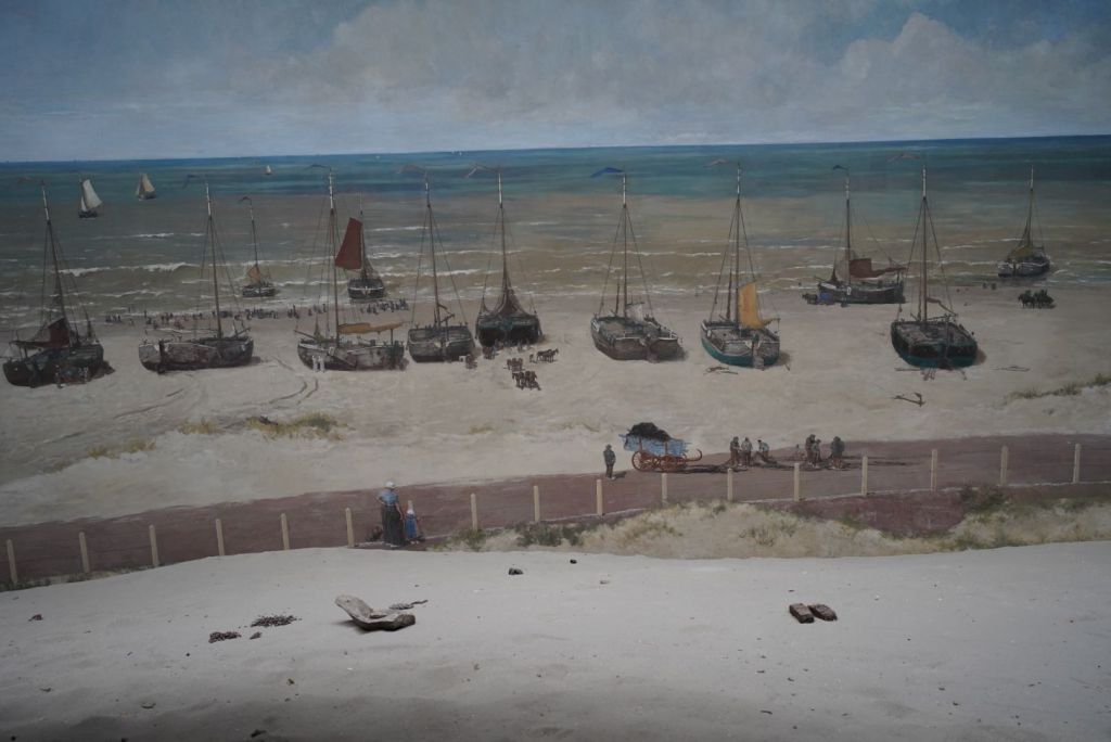 En passant, nous avons visité également un Panorama photographique de la mer du Nord peint à la fin du 19ème par Mesdag marié une Van Houten, peintre tout aussi remarquable. Cet ensemble pictural ressemble à un cylindre dans lequel il convient de se hisser par un escalier en colimaçon et dans lequel nous circulons avec le sentiment d’être sur la plage de l’époque, entourés de sable, de la mer, du ciel et plus vivant que jamais !