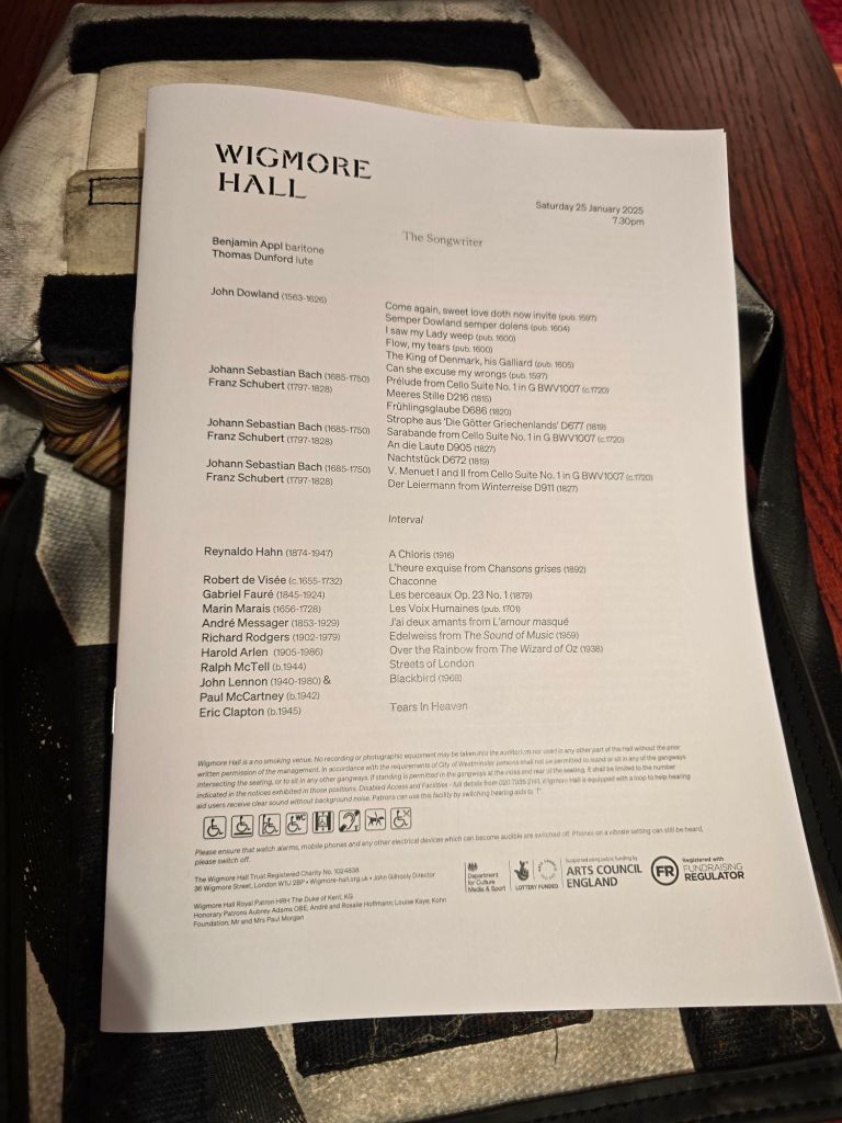 Au Wigmore Hall, Benjamin Appl, sublime baryton blond, au timbre profond, a dialogué, ce soir, avec Thomas Dunford, fabuleux joueur de luth et de théorbe, toute en finesse. Ils nous ont retracé, en musique, l’histoire de la mélancolie et de l’amour, pas forcément heureux, depuis la Renaissance avec Dowland, qui a bien fait pleurer dans les chaumières, en passant par le joueur de vielle du Wintereisse de Schubert « tout aussi gai », pour mieux retrouver Verlaine par Fauré et Reynaldo Hahn le plus taquin et drôle, « que c’est bête un homme, alors deux… » d’après un texte de Sacha Guitry. Et, last but not least, ils ont ouvert le bouquet final avec « under the rainbow » après « Eldeweiss » de la mélodie du bonheur, et enfin, « blackbird » et « yesterday » des Beatles repris par la salle…de la folie, sans oublier Clapton et son superbe « tears in heaven ».