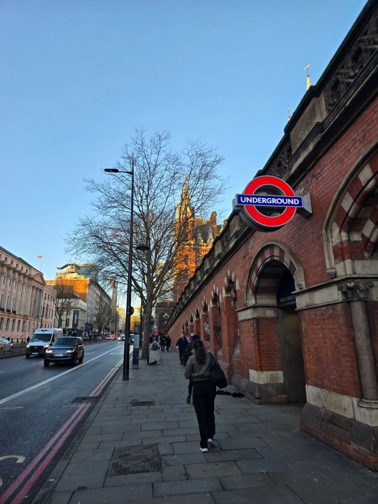 J’ai marché depuis St Pancras jusque Camden town en faisant des tours et des détours. J’ai découvert la petite église de St Pancras, et ai longé le Royal College. Et, sur mon chemin, des bus impériaux, des cab, des joggers et des vieux des jeunes, la vie, l’English way of life. Un mec avait des pin’s sur son sac en bandoulière et l’un d’entre eux représentait son engagement pour l’Europe…