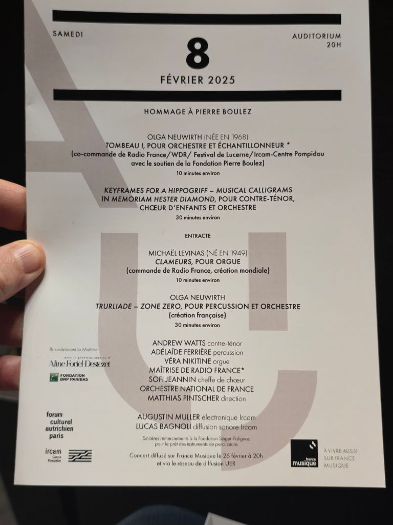 Olga Neuwirth est considérée comme une immense compositrice de musique contemporaine, une des 1ères femmes, issue d’une société conservatrice et rigide, et pourtant elle a gagné sa place au panthéon des grands musiciens par sa capacité extraordinaire à rendre compte de l’histoire tout court, dont celle de la musique, intégrant dans sa grammaire, Purcell, Debussy, Boulez (qui l’a aidée et jouée), … mais aussi des cinéastes tels que David Lynch, dont l’univers lui a inspiré un opéra « Lost Highway ». Elle a composé un hommage à Klaus Nomi que j’ai vu hier. Nombreux sont ceux qui la citent et la respectent.