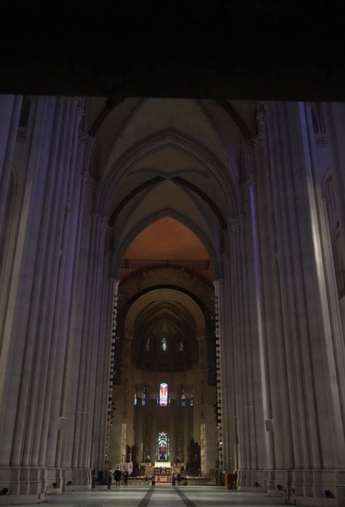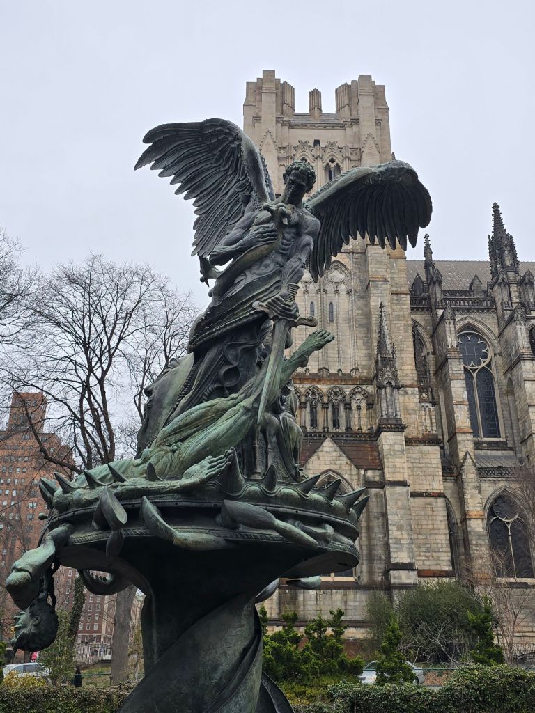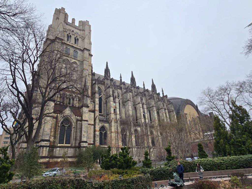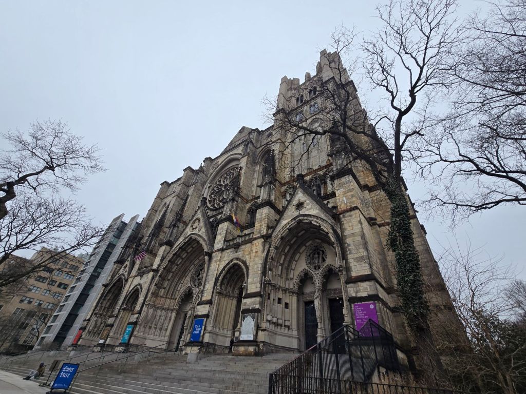 En ce dimanche, la cathédrale St John la divine dans l’Upper West side nous semblait toute indiquée. Elle est le siège de l’église épiscopalienne de NY. Sortie de terre en 1899, elle attire l’œil par sa majesté, 53 m de hauteur et longue de près de 183 m, et ses vitraux. Elle mérite le détour pour ses petites chapelles, et les legs de ses donateurs. Le piano blanc de Duke Ellington y a trouvé sa place, ce fut également le lieu de ses funérailles en 1974. Et puis, un retable signé Keith Haring trône dans la chapelle St Colombe, dont ce fut la dernière œuvre avant sa mort, en 1990.