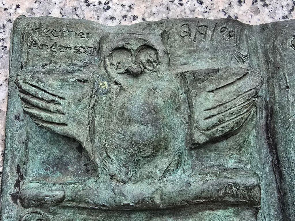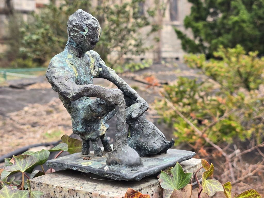 Un petit jardin jouxte la cathédrale, avec en son centre, une sculpture composée de personnages bibliques, signée de Simon Verity, entourée d’autres plus petites et poétiques.