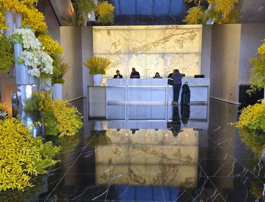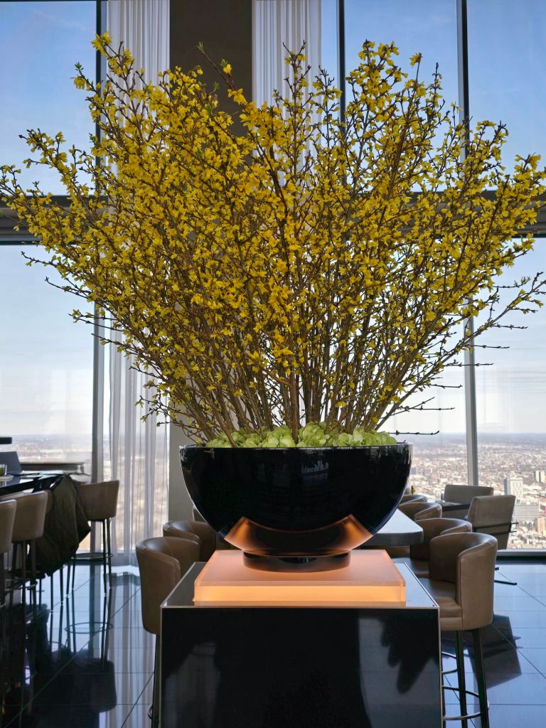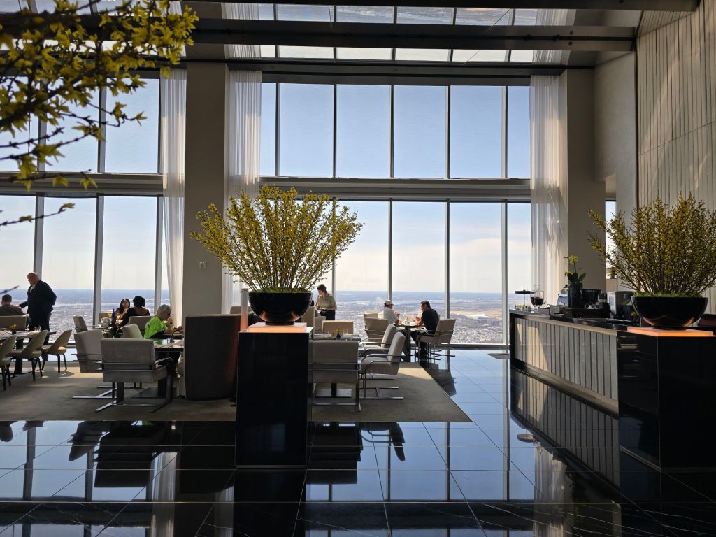 un grand hôtel, au propre et au figuré, situé dans le downtown de Philadelphia. 3 ascenseurs permettent d’accéder aux 60 étages du building tout en parois de verre, et le top floor offre une vue imprenable sur la mégalopole. Il en existe un, avenue Georges V, à Paris, que je ne connais pas in situ ou pour sa table.