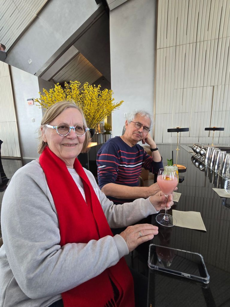 Délectation à Philly, du trio, sur toutes les dimensions, les cocktails (kumquat rhum, raspberry bellini et gingembre lime tequila), les assiettes (de calamars frits et de tartare de thon, accompagné d’un guacamole et de radis en fines lamelles), et l’endroit, la vue, le service, la tranquillité … absolutely fabulous !