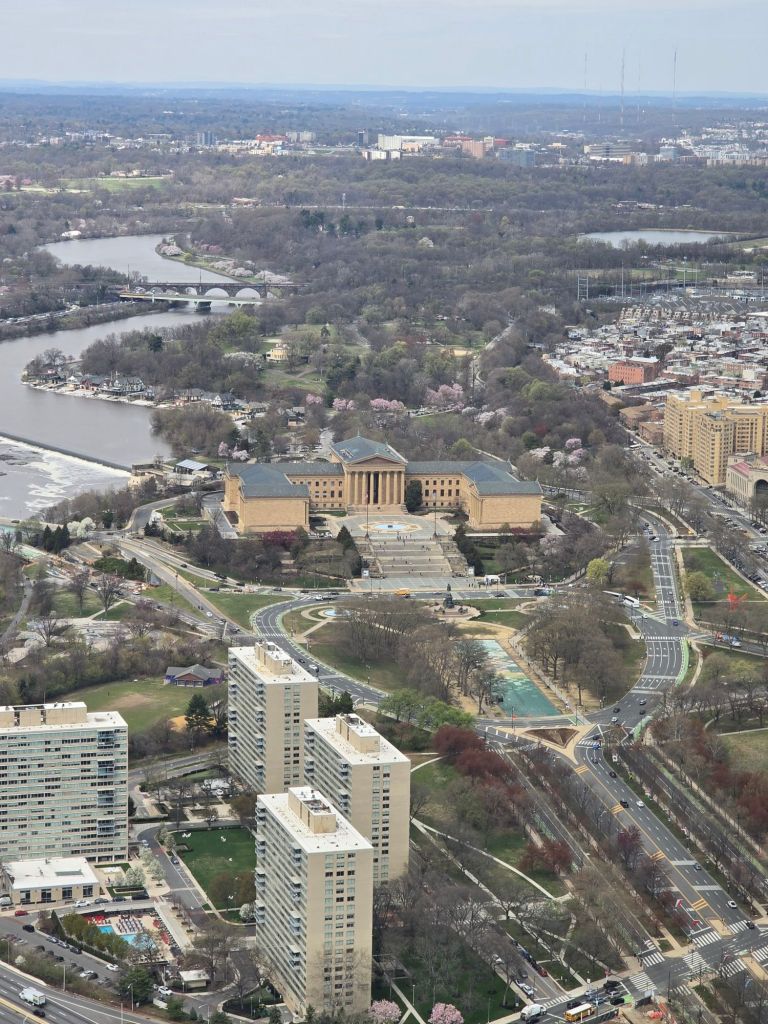 L’avenue ou Museum Mile qui conduit au Fairmount Park est splendide, surtout en cette saison, les arbres en fleurs apportant des dégradés de couleurs. Elle est comparée aux Champs-Elysées de par sa longueur, sa largeur, et sa majesté. A son commencement, 2 bâtiments se suivent, sur le même alignement, il s’agit de répliques de l’hôtel Crillon et du musée de la Marine. Et plus loin, un musée Rodin offre à voir des copies des sculptures. C’est un lieu pour tous, les joggers, les flaneurs, et les rêveurs…