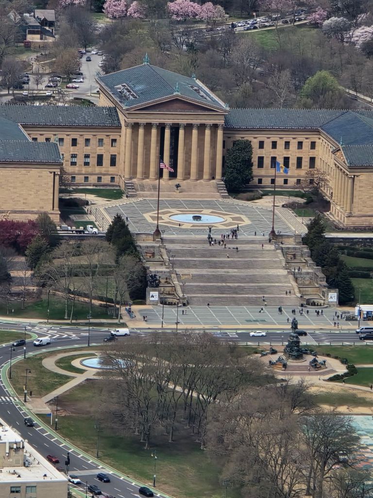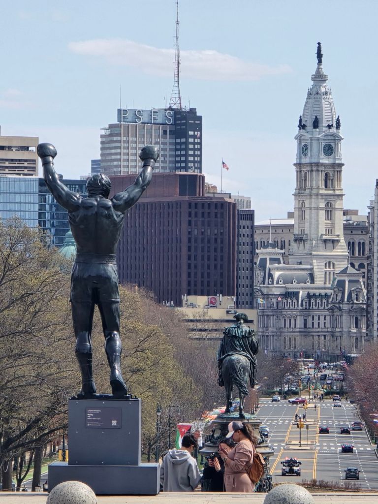 Sur la photo panoramique, vous apercevrez le Philadelphia Museum of Art avec ses célèbres marches et à leur sommet, une statue de Rocky Balboa, en tenue de boxeur, les bras en l’air, victorieux. Nous ne les avons pas grimpées en courant, et pourtant, nous étions fiers d’être là, aussi.