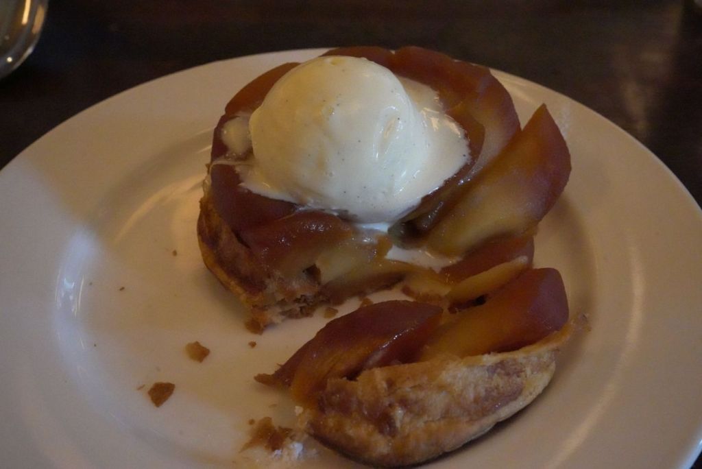 Et, en milieu d’après-midi, après l’exercice de la marche, est venu le temps du sucré et de la tarte tatin, tiède, et caramélisée, chez « Parc », un délice unanime.
