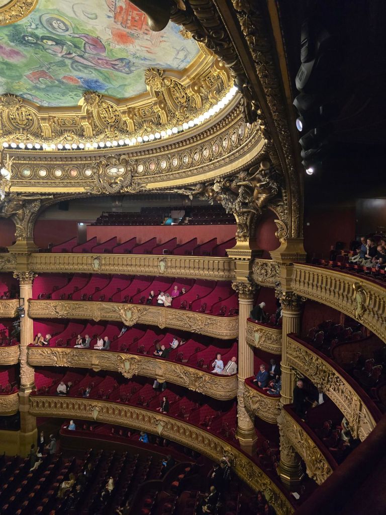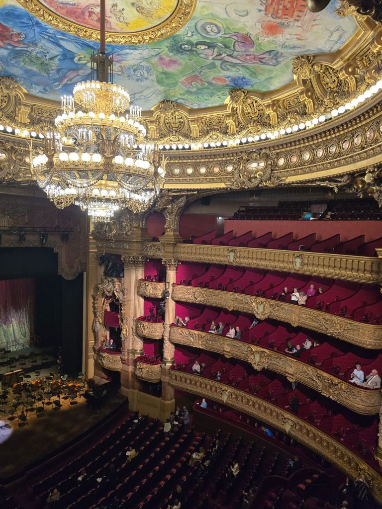 Sans aucun complexe, chaussée de mes Dr Martens et d’un jeans Levi’s, je me suis faufilée telle un poisson, dans ses eaux familières, se ressourçant au Mont Gerbier des Joncs de la musique soit au 4ème et dernier étage de l’opéra Garnier, dans l’Amphithéâtre.