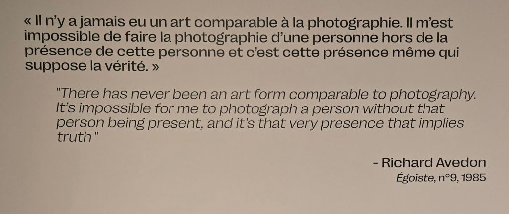 Deux jours de suite, l’appel de la photographie avec un P majuscule m’a fait de l’œil. A la Fondation Henri-Cartier Bresson, sont exposés, pour la 1ère fois en Europe, dans leur intégralité, les 110 portraits de travailleuses et travailleurs sans oublier les drifters et les malades de l’ouest américain, captés par Richard Avedon, connu pour ses photos de mode et portraits de célébrités, plus que pour ses reportages sur le mouvement de lutte pour les droits civiques ou contre la guerre du Vietnam.