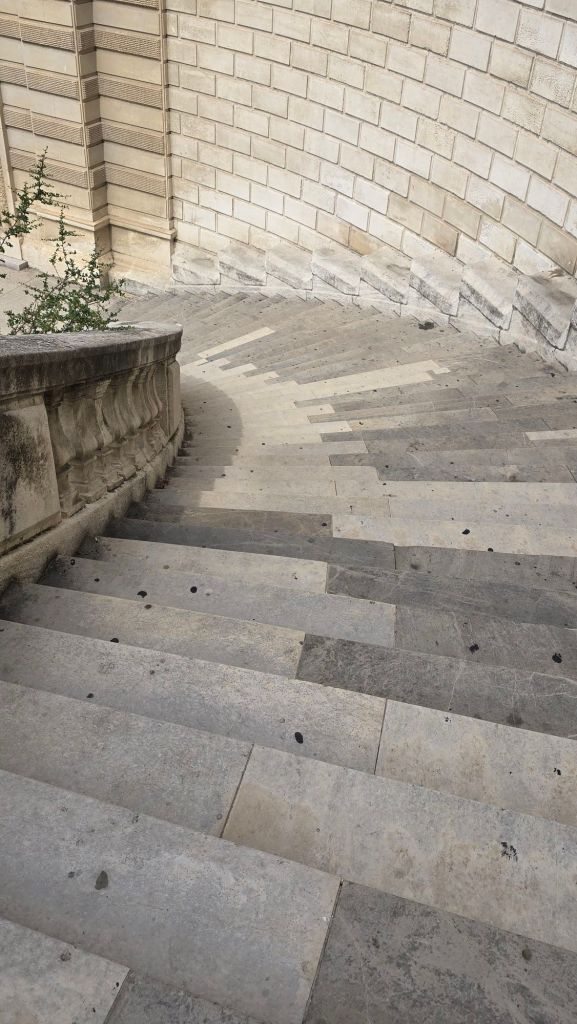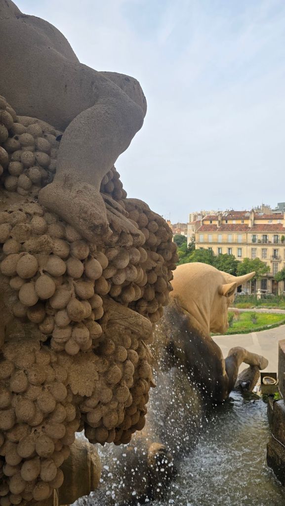 Hier, nous sommes allées voir une expo au palais musée de Longchamp sur l’art du dessin académique et ensuite, nous avons déjeuné aux Arseneaux, cours d’Étienne D’Orves. Beignets de fleurs de courgettes, selle d’agneau poivrons et figues au yaourt grec. Délicieux. Un verre de vin rempli de glaçons…