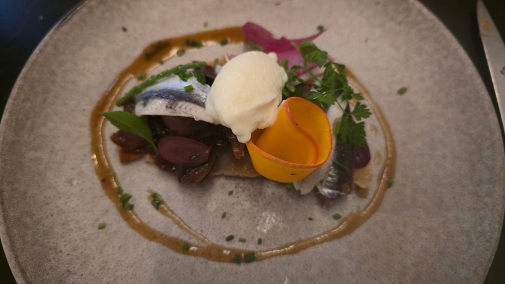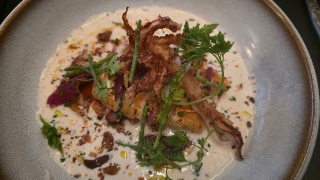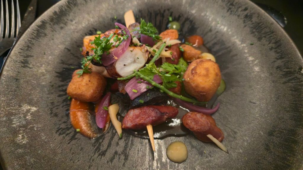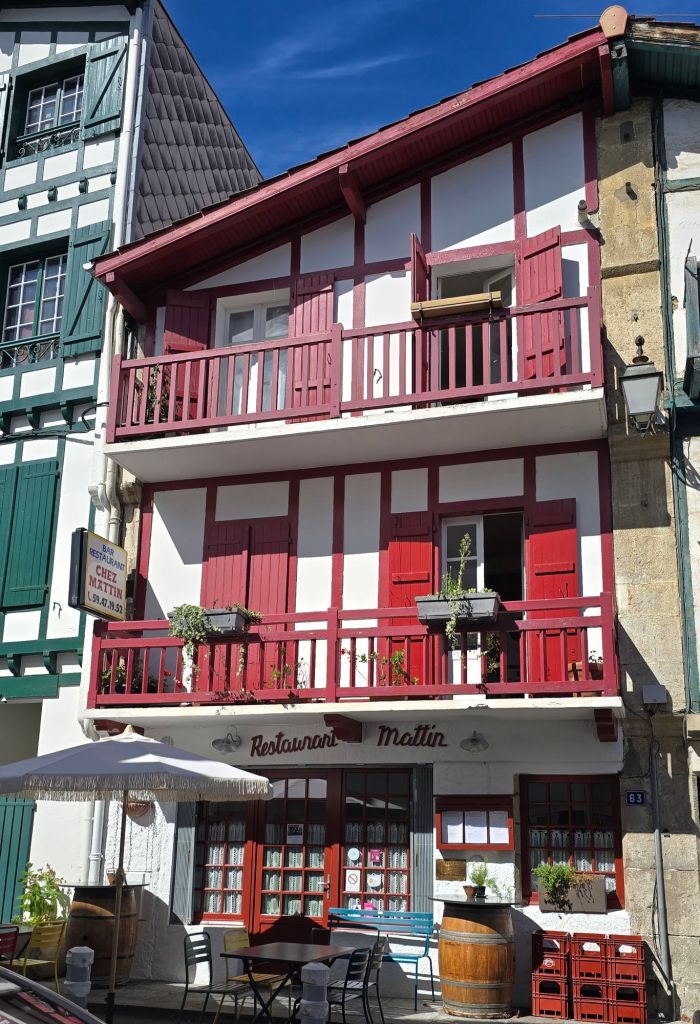 Hier, nous avons déjeuné « chez Mattin », ding dang dong, un restaurant centenaire situé dans le centre de Ciboure, qui propose des spécialités culinaires d’exception : Chipirons, Poulpe, Soupe de poissons, et autre crème brulée aux fruits rouges à base de lait de brebis…cuisinés divinement bien, avec des sauces qui vont chercher dans les algues, les herbes, les saveurs d’ici et d’ailleurs, le Japon n’est pas loin (pâte de gyoza…).