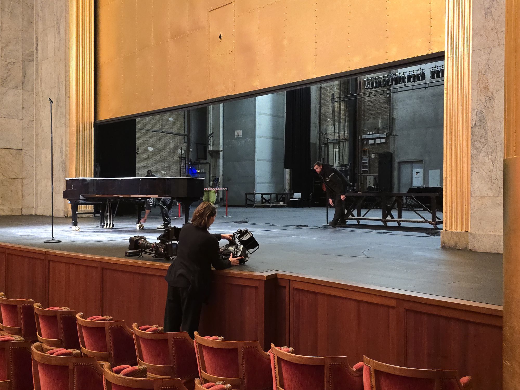 Au cours du WE qui a précédé, j’ai écouté la 10ème symphonie de Chostakovitch par l’orchestre de Lucerne sous la direction de Sanderling tout en regardant sur une toile de cinéma derrière la scène, une animation de William Kentridge, cet artiste d’Afrique du Sud, qui joue avec les miniatures en carton, l’ombre et la lumière et le théâtre des hommes. Son sujet de prédilection, l’oppression, et samedi il a réussi la gageure d’illustrer une oeuvre symbolique de Chosta. qui a été composée juste après la mort de Staline en 1953. Le propos visuel tournait en boucle sur la fin de 2 régimes totalitaires, et entre les deux, la résistance des idées de Maïakovski, suicidé, et de Trotsky, assassiné, enserrés par les dictatures de Lénine et de Staline, à travers un petit théâtre vide, un piano sans pianiste et ces 4 grandes figures représentées par des danseurs masqués à leur effigie. Ces personnages de l’Histoire ont nourri l’âme russe et pénètre et bouscule encore notre monde d’aujourd’hui, en maltraitant et tuant nos voisins ukrainiens et en nous faisant douter de notre capacité à résister et à restaurer la paix. La Philharmonie de Paris a pu faire venir l’artiste qui a salué et s’en est allé telle une petite souris.