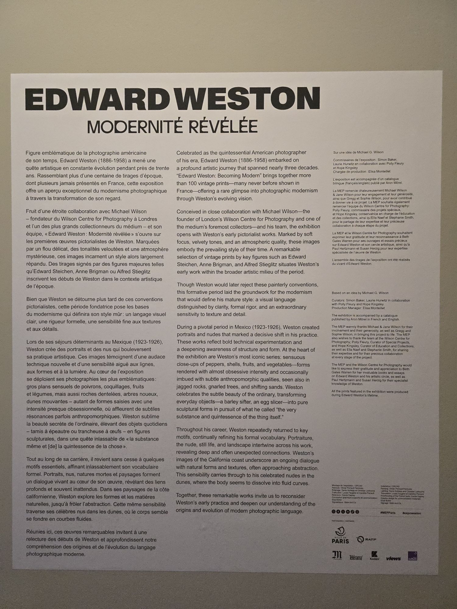 A la MEP, l’un des premiers grands photographes américains Edward Weston, sur des impressions sublimes…vous donne à voir un siècle en arrière l’Amérique, le Mexique et la certitude que le monde sans l’art et la beauté c’est wibbly wobbly.