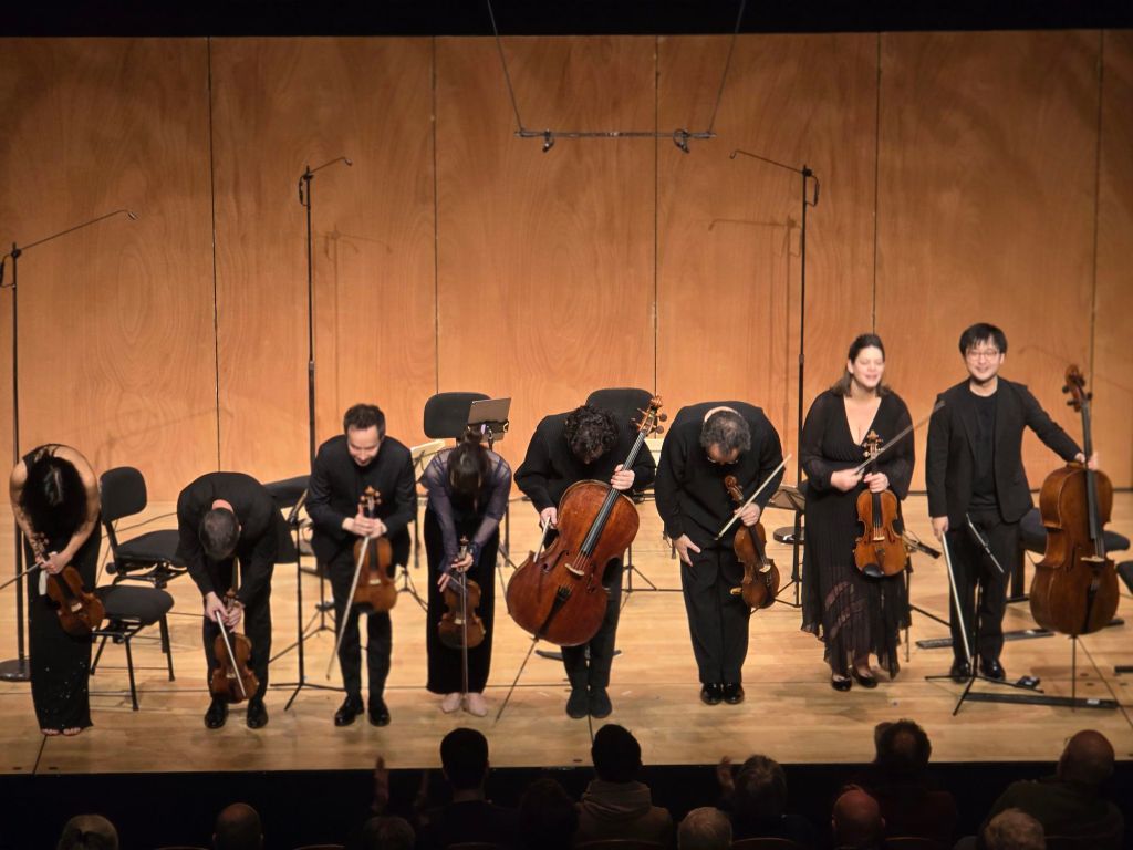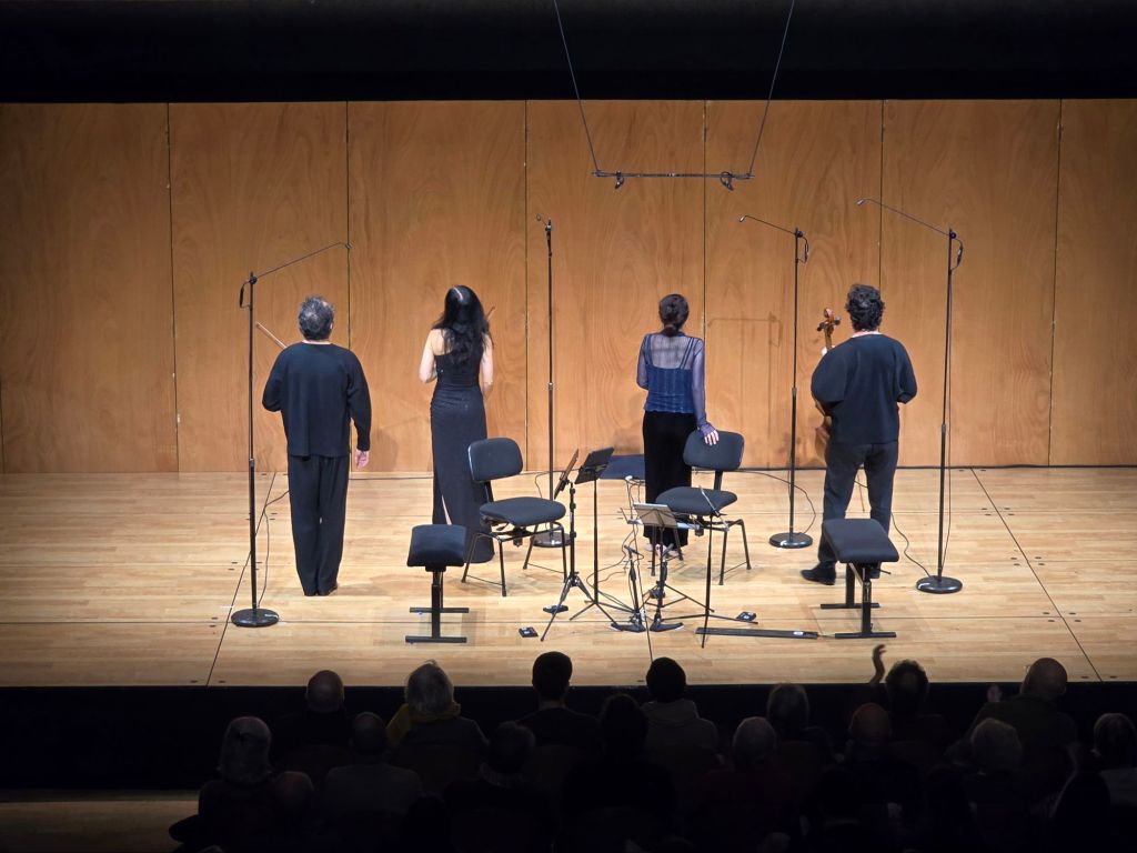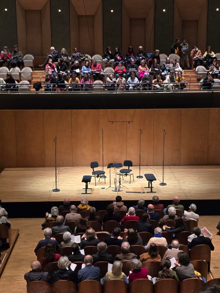 Samedi après-midi, pas moins de 6 jeunes quatuors, se sont succédés, pendant près de 6h. A l’honneur des chefs d’oeuvre de l’histoire de la musique (les derniers opus de Beethoven, d’Haydn…mais aussi Webern, Korngold entre autres) et des oeuvres contemporaines, voire des créations (de Xu Yi mêlant instruments de musique occidentaux et objets de la Chine bouddhiste symbolisant les 5 éléments l’eau, la terre, le bois, le métal et le feu). C’était une exceptionnelle mise en bouche de la 12 ème biennale organisée par Pro Quartet. La scène installée au milieu du Studio a permis à tous les spectateurs et auditeurs de voir et écouter les quatuors de face, de dos, ou de profil.