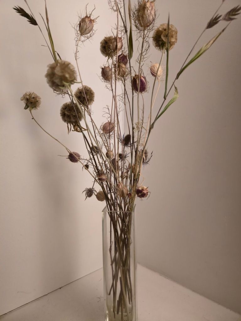 Côté fleurs, sèches ou vivantes, elles entrent dans mon décor intérieur pour animer ma bibliothèque. Et à l’extérieur, les rosiers rampants, fifi 1 et fifi 2 se mettent à pousser ardemment !